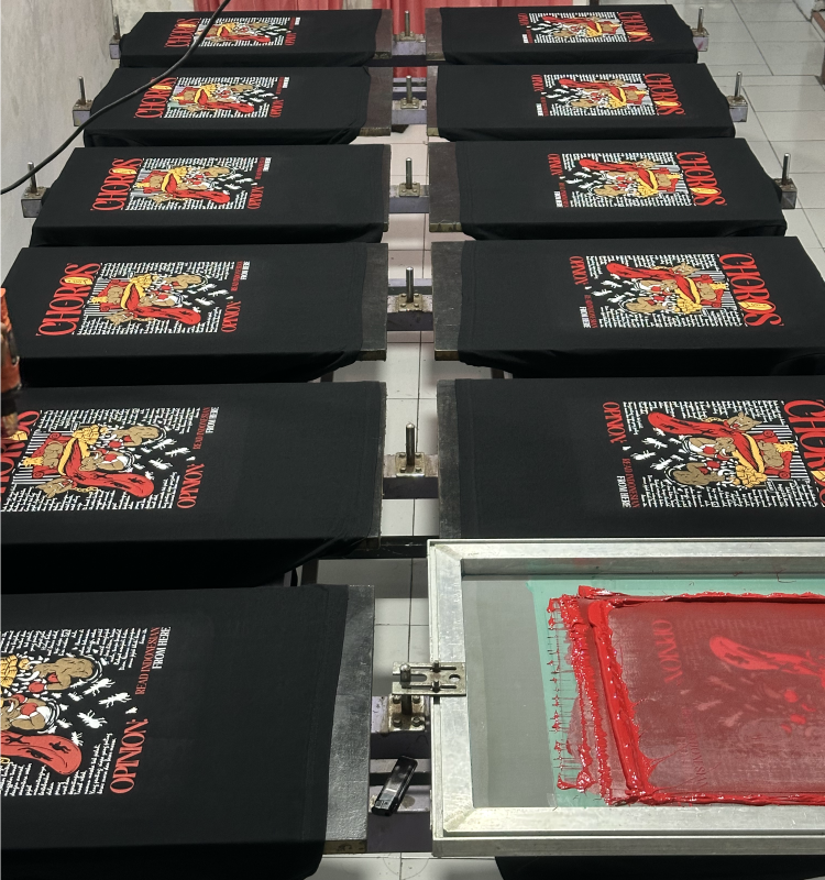 Hadir untuk memenuhi kebutuhan kaos komunitas, event, hingga merchandise brand Anda. Melalui proses penyablonan dengan standar kontrol kualitas yang ketat, mulai dari pemilihan tinta hingga tahap curing. Kaos produksi kami mengutamakan presisi warna, kehalusan tekstur cetak, hingga ketahanan sablon yang tahan lama meski dicuci berkali-kali.